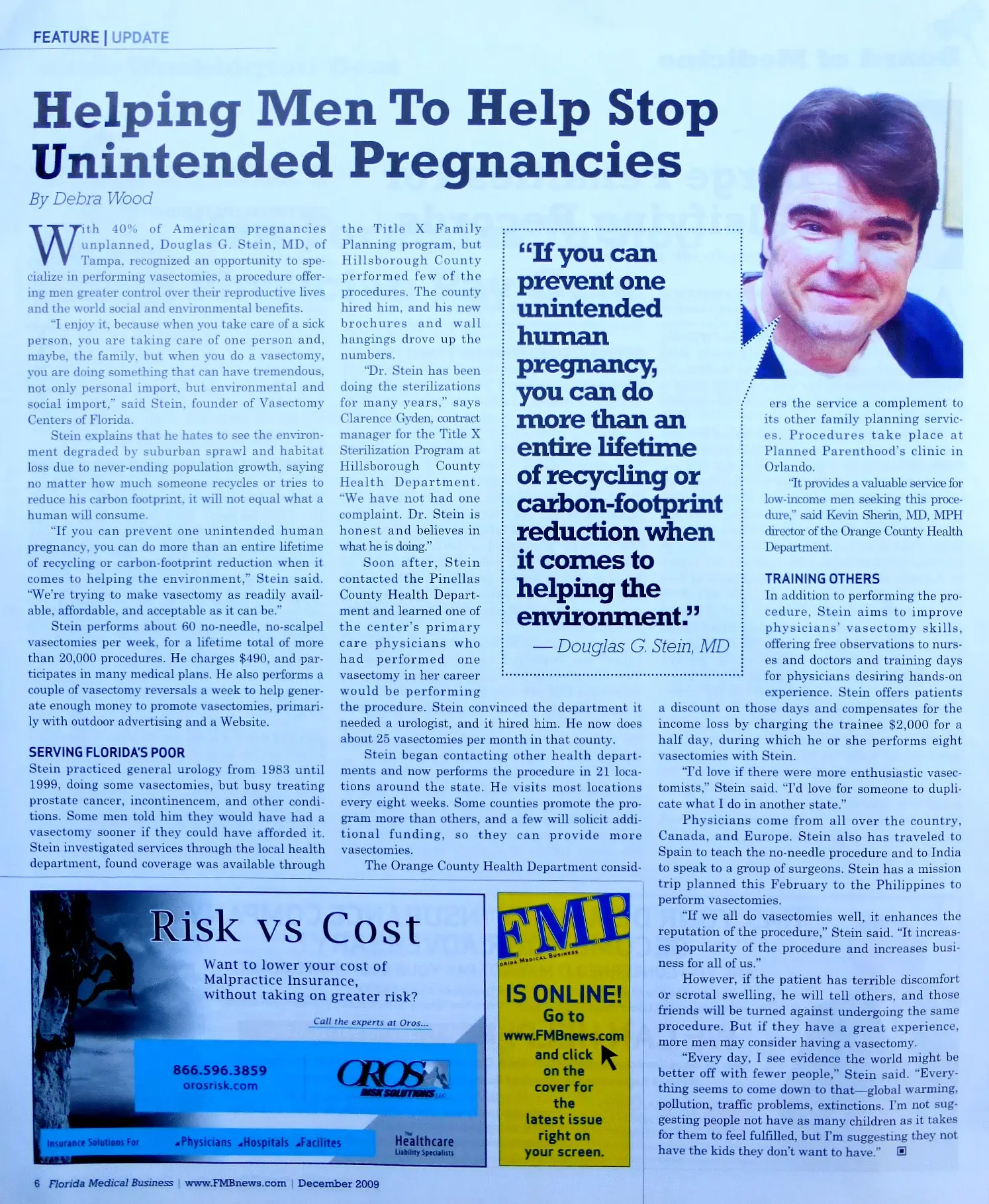 The December 2009 issue of Florida Medical Business featured Dr. Stein in its cover story. See the article here.