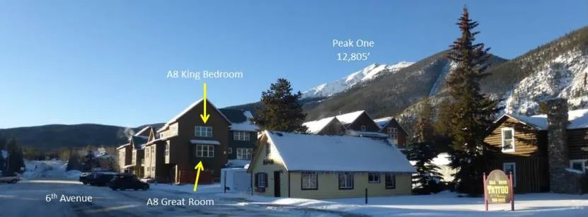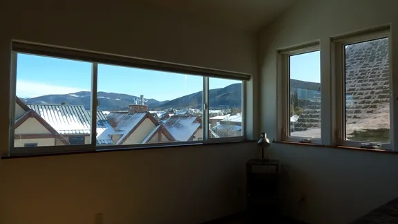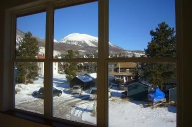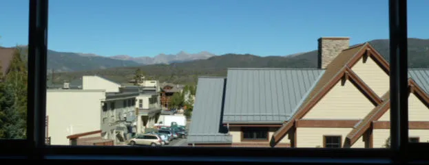 The views from the queen windows are of the hills between Frisco and Breckenridge and of quiet 6th Avenue.