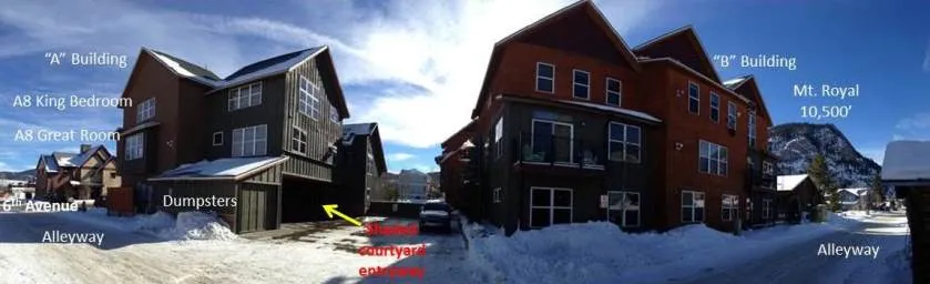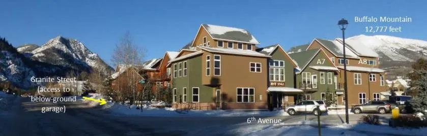 View from the intersection of 6th Avenue and Granite Street. There is no access to the 4 condos of Bears Den A Building from 6th Avenue.