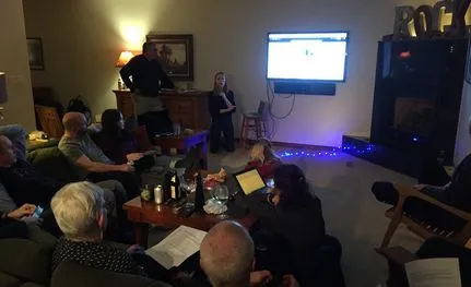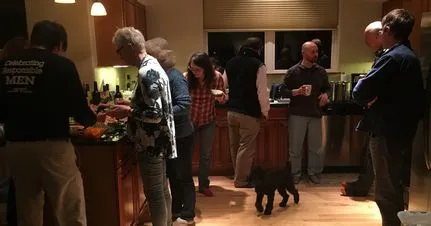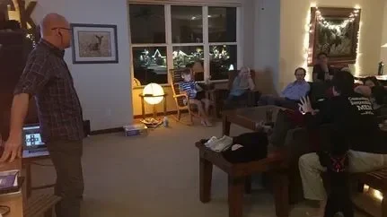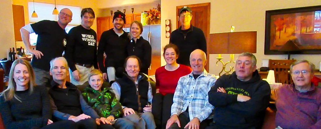 Seated on sofa: Sarah Demediuk (Melbourne, Vistoria), John Curington (Tampa), Henry Demediuk (10), Doron Boone (Bristol, UK), Melanie Savard-Cote (St-Joseph-du-Lac, QC), Nick Demediuk, Jonathan Stack (World Vasectomy Day, NYC), Jim Haller (Minneapolis, MN).