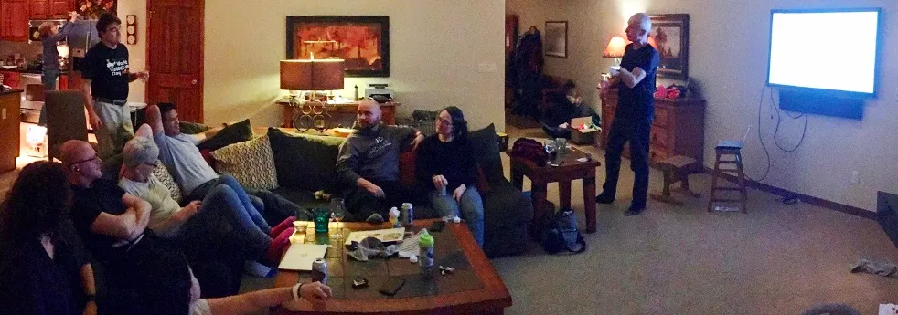 My biggest disappointment was not getting a shot of the whole group when all were in attendance, after late arrivers and before early departers. But here are some of us.